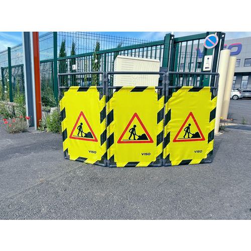 | Varunamn | ”Varning arbetsplats”, barriär med 3 paneler 100x170 cm – Viso, Användning: Inomhus-/utomhusbruk |