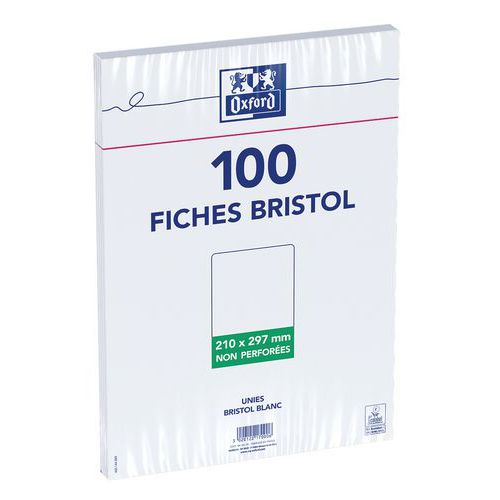 | Varunamn | 100 A4-kort utan hål, vita – Oxford, Vikt: 210 g/m², Antal ark/fem böcker: 100, Linjering: Ingen |