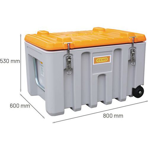| Varunamn | 150 l transportlåda med vagn, Volym: 150 L, Total höjd: 530 mm, Total bredd: 600 mm, Längd totalt: 800 mm |