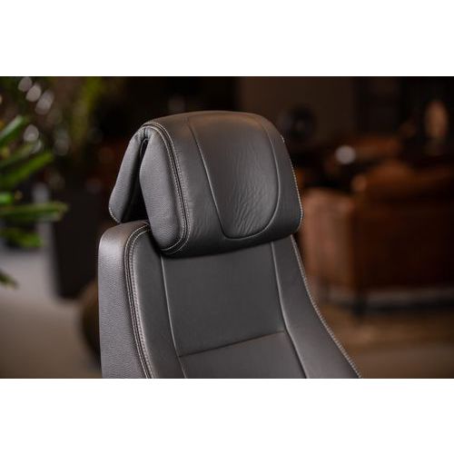 Fantastisk komfort - stolen är utrustad med nackstöd i svart läder som kan justeras i höjd och djupled, uppfällbara armstöd med 30 graders lutningsinställning som maximerar stödet för armbåge och arm samt svankstöd med luft för att få bra stöd för korsrygg.