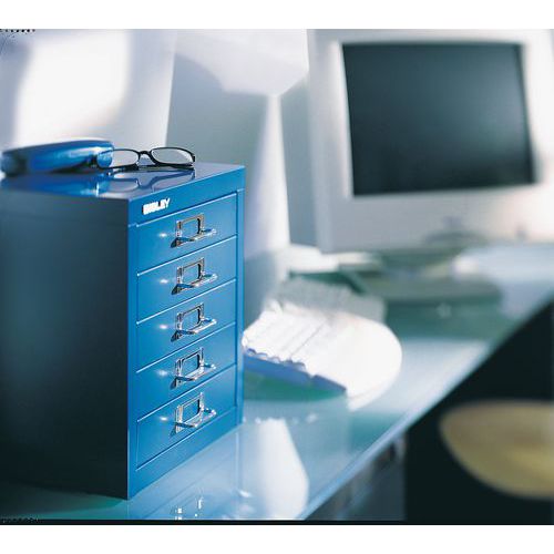 5-lådors texturerat blått skåp - Bisley