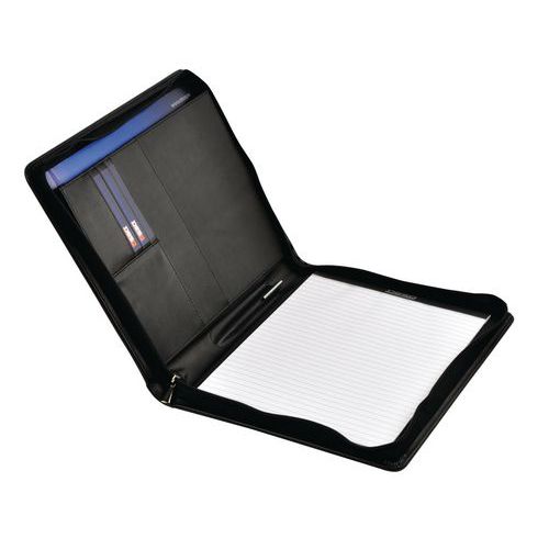 | Varunamn | A4 konferensmapp i läder med dragkedja, Material: Läder, Färg: Svart, Dokumentformat: 210 x 297 mm (A4) |