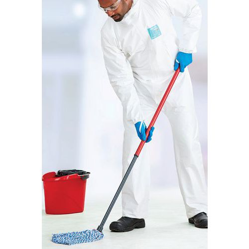 - Bekväm overall, tillverkad av tyg som släpper igenom vattenånga (andas) för att minimera risken för värmestress.