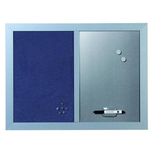 - Blokko anslagstavla är en modern ny produkt som erbjuder utmärkt kvalitet. Här kombineras elegans och hållbar skrivyta med en robust silverfärgad ram. Passar till kontoret såväl som gemensamma utrymmen. Enkel upphängning. Både vertikal och horisontell upphängning är möjlig. Tjocklek på ram: 3 cm (2 cm i mitten). Upphängningskit igår. Beroende på vilken variant du väljer så ingår magneter, kartnålar och svart dryerase penna. De finns 2 varianter: 1. Enbart blå filttavla 2. Kombination av blå filt resp silverfärgad magnetisk dryerase yta