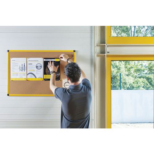 Korktavlan sticker ut tack vare sin gula ram. Stark och hållbar aluminiumram. Rundade hörn med svarta PVC-överdrag ger tavlan ett snyggt utseende.