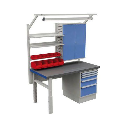 | Material för arbetsbänkens bordsskiva | Stål |
