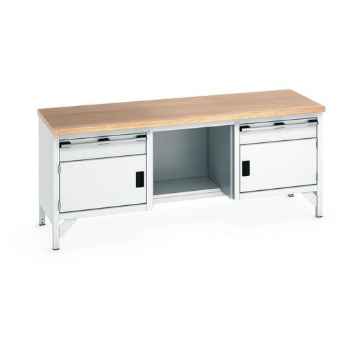 Arbetsbänk i bokträ Cubio – 2 dörrar – 2 lådor – L2000mm – Bott Arbetsbänk i bokträ Cubio – 2 dörrar – 2 lådor – L2000mm – Bott