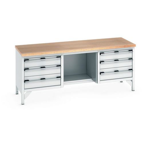 Arbetsbänk i bokträ Cubio – 6 lådor – L1500mm – Bott