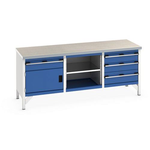 Arbetsbänk i linoleum Cubio – 1 dörr – 3 lådor – L2000mm – Bott