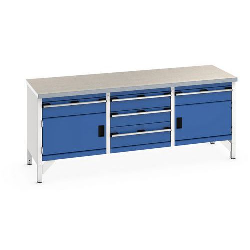 Arbetsbänk i linoleum Cubio – 2 dörrar – 5 lådor – L2000mm – Bott