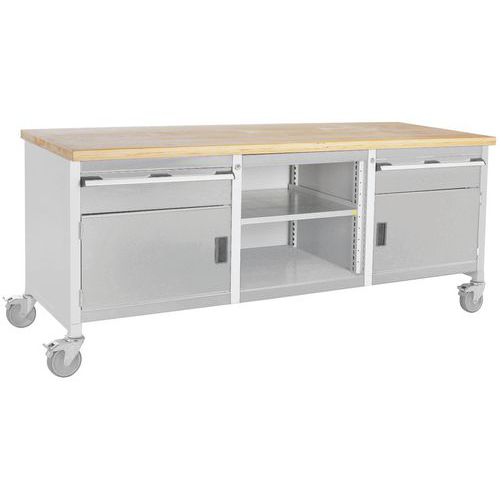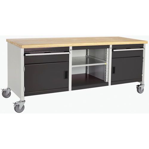 Arbetsbänk mobil Cubio – bokträskiva 2 dörrar, låda och hylla – Bott
