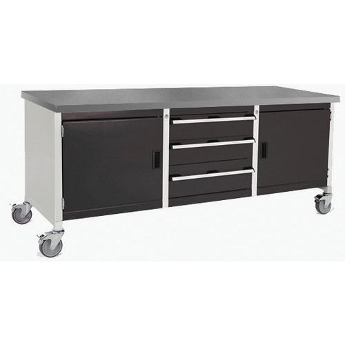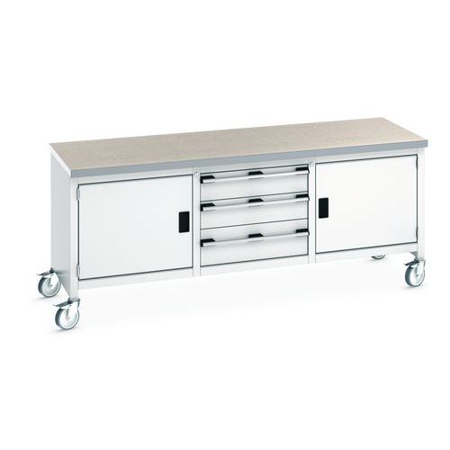 Arbetsbänk mobil Cubio – linoleumskiva 2 dörrar, låda och hylla – Bott
