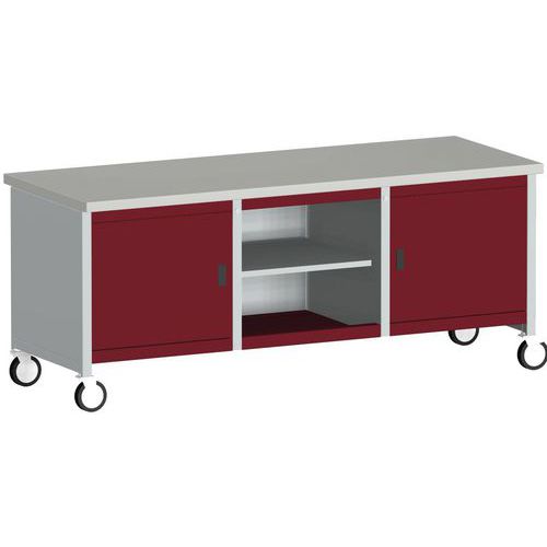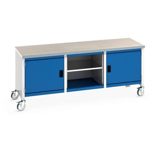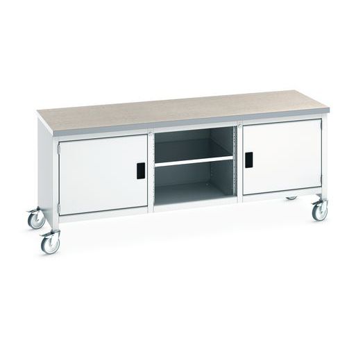 Arbetsbänk mobil Cubio – linoleumskiva 2 dörrar och hylla – Bott