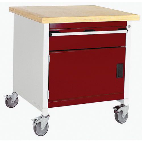 Arbetsbänk mobil monoblock Cubio – bokträskiva 1 dörr och låda – Bott