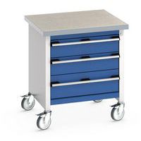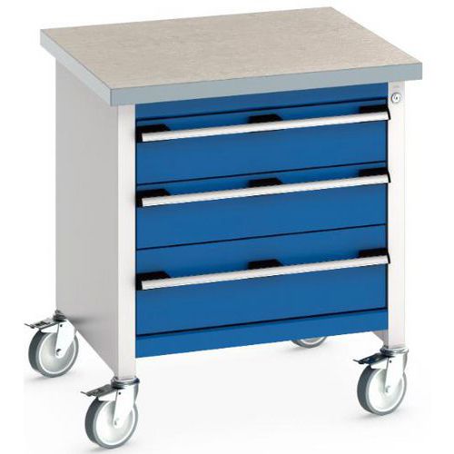 Arbetsbänk mobil monoblock Cubio – linoleumskiva och lådor – Bott