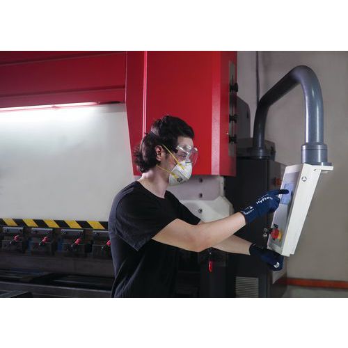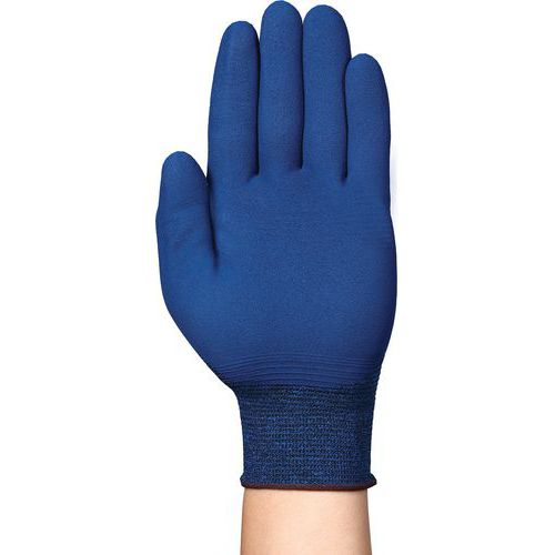 Skyddshandske med ESD-skyddande egenskaper certifierad enligt EN 16350:2014, utformad för att skydda produkter från elektrostatisk urladdning. Pekskärmskompatibilitet: gör det möjligt för bäraren att arbeta på en pekskärm utan att behöva ta av sig skyddshandskarna. Godkänd enligt Dermatest® dermatologisk testning. Ger utmärkt grepp och långvarigt skydd.