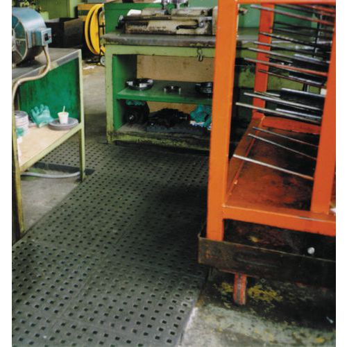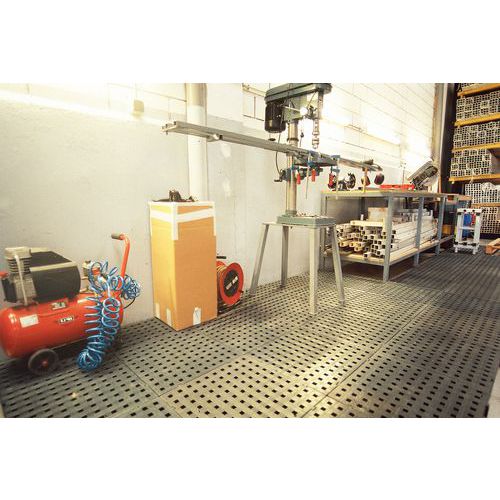 Slitstark och isolerande golvtrall med tjock struktur som klarar oljiga eller våta golv.