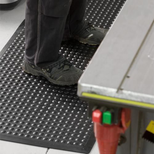 Undersidan har ett sugkoppsmönster som gör att mattan suger sig fast i golvet och ligger still. Mattan finns i ett fast mått samt i moduler så att du själv kan bygga din matta i önskad storlek. Modulerna har inbyggda snedfasade kanter för minskad snubbelrisk och tas lätt isär för rengöring. Mattan passar i lätt- och tung industri. Den höga olje-, fett-, kemikalie- och temperaturbeständigheten gör att den även passar på svetsarbetsplatser där det förekommer både svetsglöd och skärvätskor.