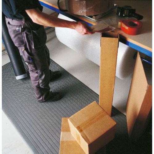 Yoga Retail är en mjuk, dämpande och avlastande arbetsplatsmatta. Tillverkad i vinyl med lägre densitet, vilket gör den till ett prisvärt alternativ för de flesta arbetsmiljöer. Mattan har fasade kanter vilket minskar snubbelrisken, samt ribbmönstrat ytskikt som ger ett bra halkskydd. Mattan är lämplig för torra, lättare industrimiljöer till exempel packbord, kassadiskar och liknande då den ej är beständig för olja och kemikalier. Yoga Retail är lätt att skära till runt bordsben eller maskinfundament. Matta, tjocklek (mm) : 9 Matta, användning : Light duty