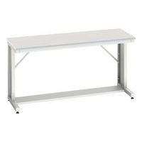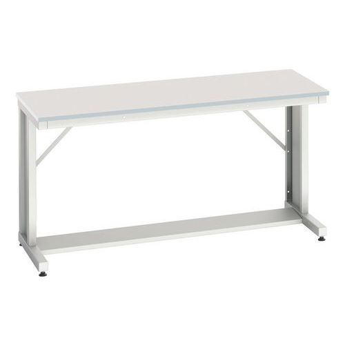 För monterings- och kontorsmiljöer. Robust stålram. L-formade ben med domkrafter. Förstyvningar för perfekt stabilitet. 2 bordsskivor att välja mellan. 20 mm tjock. Kan monteras på hängande lådor. Kompatibel med portalramen på sidan 203. Levereras demonterad, enkel att montera.