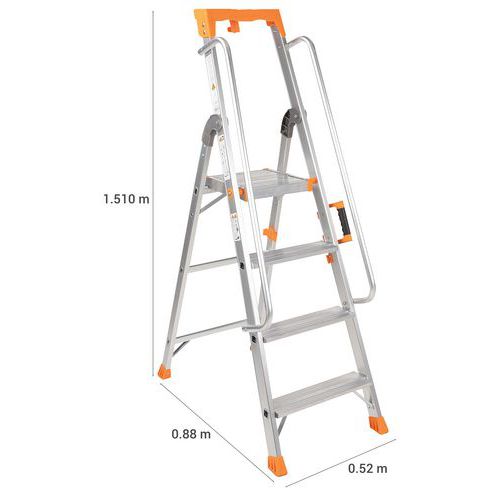 Arbetsstege i aluminium med ramp, Åtkomsthöjd: 2.9 m, Plattform, höjd: 0.901 m, Antal steg: 4 Arbetsstege i aluminium med ramp, Åtkomsthöjd: 2.9 m, Plattform, höjd: 0.901 m, Antal steg: 4