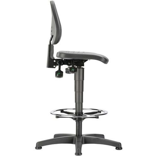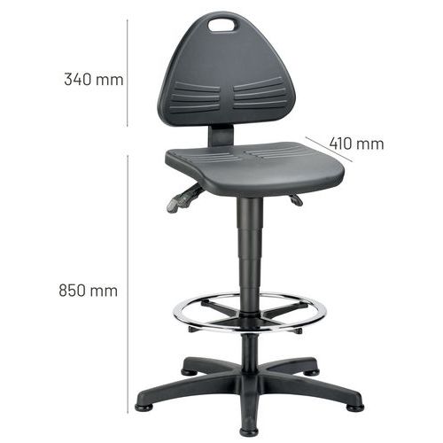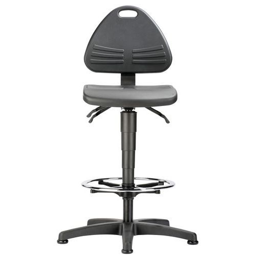 | Varunamn | Arbetsstol Isitec hög, Typ av fot: Glidfötter, Sits, material: Polyuretan, Modell stolar: Hög, Fotring Ø: ja |