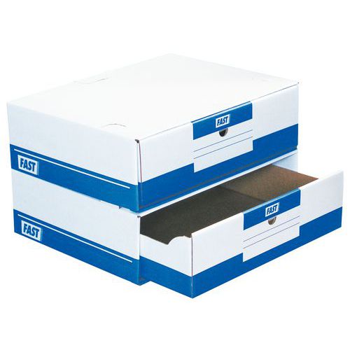| Varunamn | Arkiveringslåda med låda, Material: Kartong, Färg: Blå, Längd totalt: 28 cm, Total höjd: 14 cm |