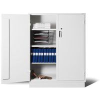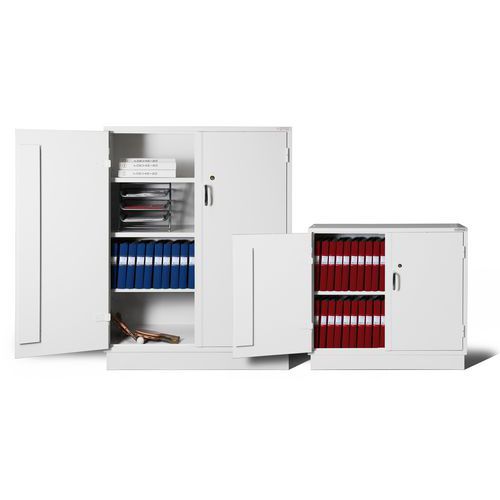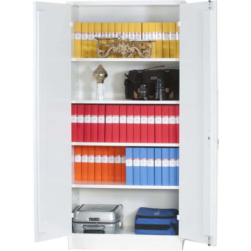 - Skåp i dubbel stålplåt med mellanliggande brandisolering i front, botten och topp och sidor.