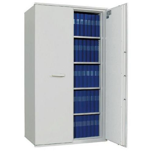 - Skåpen skyddar större volymer av handlingar mot brand och tar förhållandevis liten plats tack vare sin unika 2 dörrars konstruktion. Tunna väggar, låg vikt samt neutral design gör att skåpen kan placeras ute i arbetsmiljön. De kan inredas för alla varianter av pärm- och mappsystem vilket gör dem flexibla och ger dem därmed lång livslängd, då man även kan byta och ändra inredningen vartefter behoven förändras. En utdragbar arbetsskiva som inte själ förvaringsutrymme ger en bra avlastningsyta framme vid skåpet. Dörrkonstruktionen gör att man får full tillgång till hela skåpets innehåll redan vid 90 graders dörröppning, samtidigt som de kan placeras direkt intill varandra för att spara utrymme. SA 990 rymmer dubbla pärmdjup vilket innebär hela 150 stående A4 standardpärmar eller 9 löpmeter förvaringsutrymme på endast 0,74 m². Antal nycklar: 2.