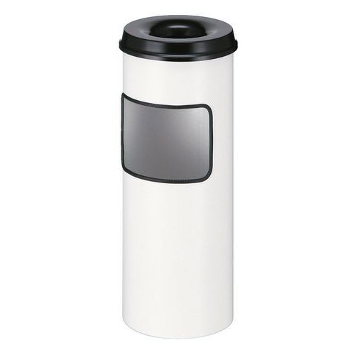 - Rund askpapperslåda i metall med svart flamskyddad topp.