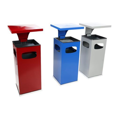 Askkopp och papperskorg med avtagbart förstärkt lock och 3 öppningar. Avtagbar inre metallbehållare. Med svart askkopp och kromat galler. Enkel att använda.