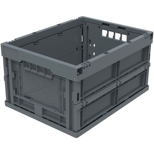 Robust, stark och långlivad vikbar behållare tillverkad av återvunnen polypropen. Behållaren kan bekvämt vikas på tvären eller i längdriktningen. Behållare med ergonomiska, halvöppna handtag. Försedd med förstärkta gångjärn och staplingssäkra kanter. Sparsam tack vare behållarnas minskade volym. Minskar kostnaderna för lagrings och transport. Miljövänlig: tillverkad av återvunnen och regenererad plast. Optimera din lagring och returtransport tack vare pallarnas minskade volym när de är hopvikta. Snabb och säker hopvikning och utfällning. Etiketthållare. Ej lämplig för kontakt med livsmedel.
