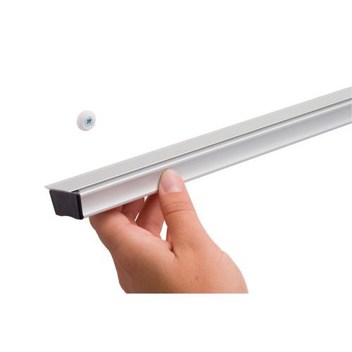 - Aluminiumlist med plasthjul som pappershållare. Skåra på framsidan för att anpassa listen. Lätt att ansluta till andra lister.