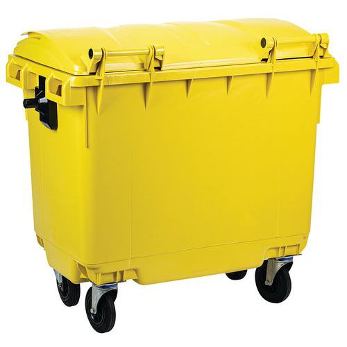 Manutan UV-resistent HDPE-avfallsbehållare. Lätt att hantera tack vare 4 svängbara hjul (Ø 200 mm), varav 2 med bromsar. Handtag på tre sidor för förbättrad manövrerbarhet. Lättskött.