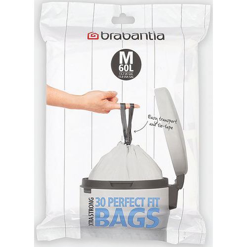- En PerfectFit-avfallspåse i ett dispenserpaket för varje Brabantia-kärl, till exempel för pedalkärl, soptunnor, sopkärl, Touch Bins etc.