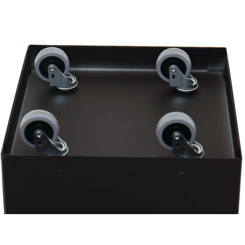 - Tunnan har hjul på undersidan som gör att den lätt går att rulla, till exempel i samband med tömning/städning.