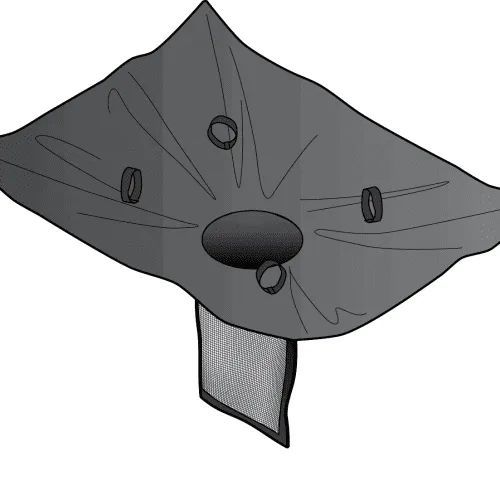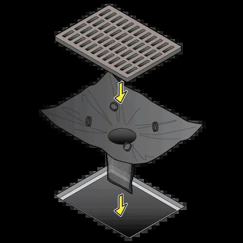 Installationen är enkel, lyft gallret, placera Ultra-Pellet Trap över öppningen och sänk gallret försiktigt tillbaka på plats, fäst sedan tyget för att säkerställa att det sitter ordentligt.