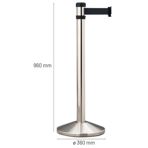 Avspärrningsband 2 m med stolpe, Användingsområde: Inomhus, Bandets färg: Svart, Bandets längd: 2 m