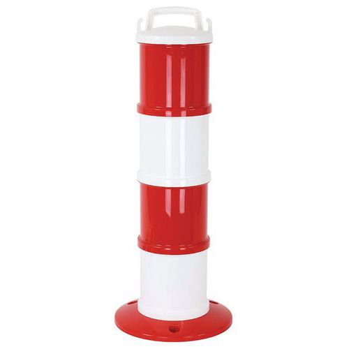 Stolpe i standardutförande: 1 fot, 4 påbyggnadsdelar (2-färgade), 1 lock och 5 meter kätting. Levereras med: - Monteringsskruvar för fot/påbyggnadsdelar - Monteringsställ för montering/borttagning av påbyggnadsdelar.