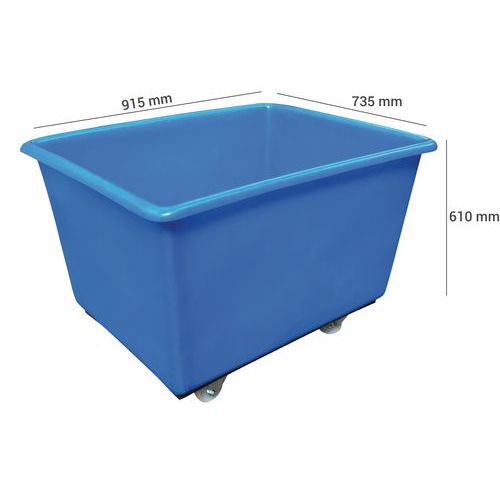 Back på hjul med förstärkning, Volym: 270 L, Total höjd: 610 mm, Total bredd: 735 mm, Längd totalt: 915 mm