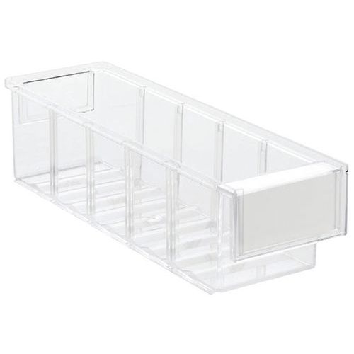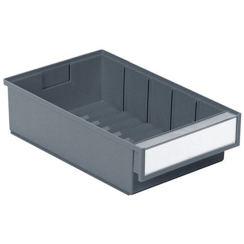 Lagerlådorna är utformade för att passa alla vanliga metriska hyllor, paternoster och industriella arbetsstationer. Lådor av samma bredd staplas säkert, även om de är av olika djup. Raka väggar säkerställer en effektiv användning av utrymmet. Färgalternativen gör att ett lagringssystem kan utformas för att uppfylla kundens krav. De glasklara backarna är genomskinliga, vilket möjliggör enkel visuell identifiering. Till varje låda ingår det etikett och etikettskydd. Material: PS = transparent polystyren, användningstemperatur från -4 °C till +55 °C. PP = färgad polypropen, användningstemperatur från -2 °C till +75 °C. Beständig mot oljor och de flesta syror och lösningsmedel.