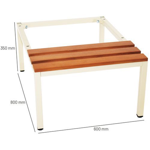 Bänk till Klädskåp Classic i 300 och 400-serien. Sittbänk utrustad med 4 ben, justerbara, för enkel installation. Finns tillgängliga med två ramfärger: beige och ljusgrå. Tillbehör till Klädskåp Classic 300 och 400 med sockel.