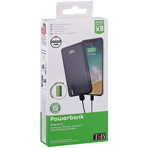 | Varunamn | Bärbar dubbel USB-powerbank – 20 000 mAh – T'nB, Kapacitans: 20000 mAh, Färg: Svart, Bredd: 7.5 cm |