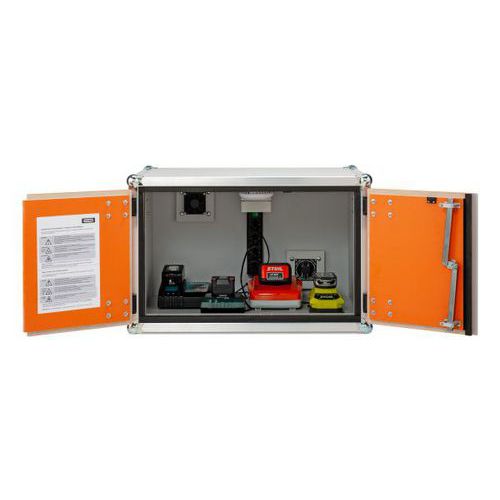 - Batteriladdningsskåp för litiumbatterier, alla relevanta säkerhetsföreskrifter för laddning av litiumbatterier följs.