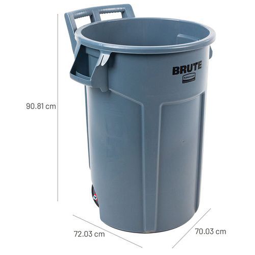 Behållare rund på hjul Brute®, Volym: 167 L, Öppning: Utan lock, Material: Plast, Färg: Grå
