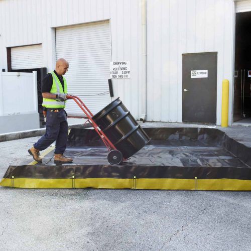 Produktens framträdande egenskaper inkluderar L-formade trådfästen som ger stadigt stöd för sidoväggarna och 12-tums höga sidoväggar som effektivt innehåller spill vid borr- och frackingplatser.