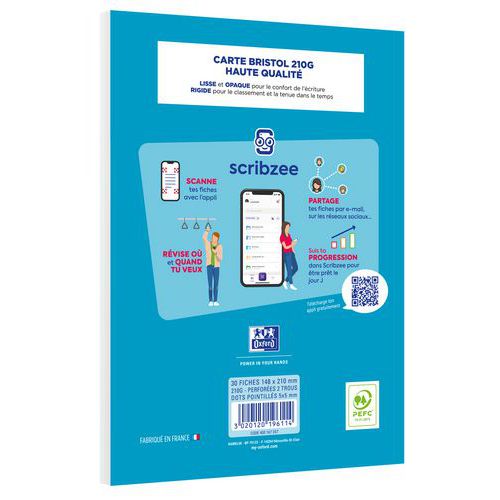 | Varunamn | Block med 30 Bristolkort 148x210 perforerade med prickar, Vikt: 210 g/m², Antal ark/fem böcker: 30 |