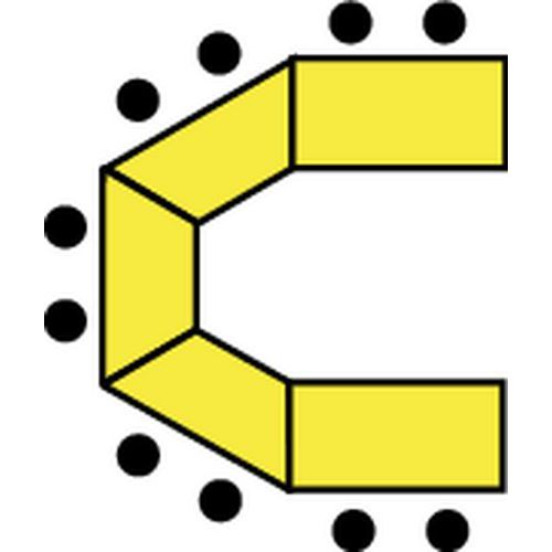 - Trapetsformat bord som kan användas fristående eller kombineras med flera för att skapa större möteslösningar.