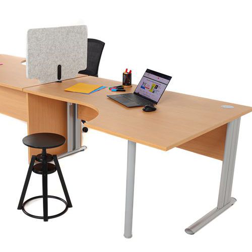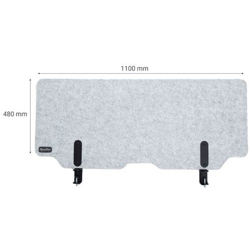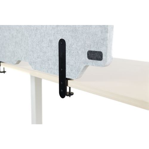 Dubbel funktion skrivbordsskiljevägg som ger avskildhet och ljudabsorption. Monteras på skrivbord med bordsskivor på 5 till 40 mm tjocklek. Skuren för att underlätta kabeldragning. Finns i två tidlösa färger med en unik design.