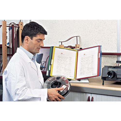 Optimalt skydd för dina dokument. Särskilt lämpad för användning i industrimiljö. Levereras med plastfickor i A4-format, rubrikhållare på 50 mm med ofärgade och färgade insticksblad.
